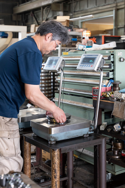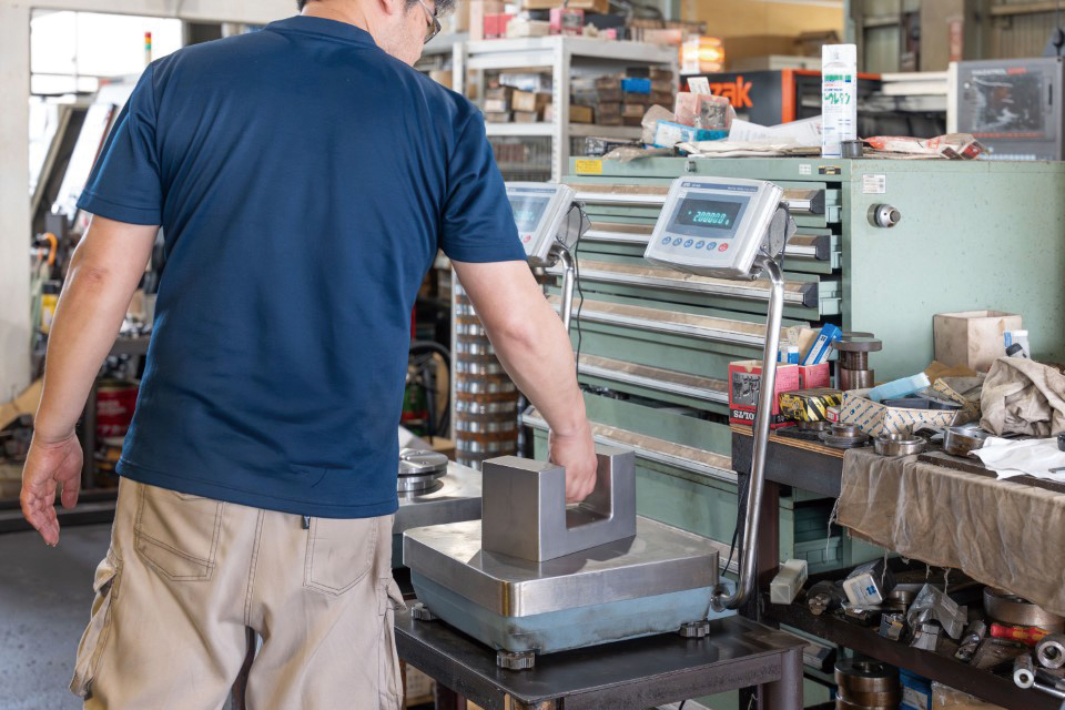 世界のトップアスリートたちから信頼されている『ウエサカのバーベル』づくりには、正確かつスピーディな計量が欠かせません。