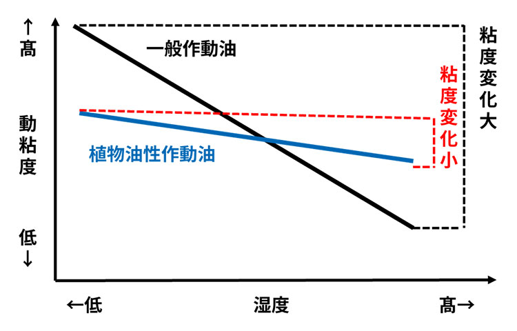 低温度では低粘度、高温度では髙粘度なので、潤滑性に優れ磨耗を防止。