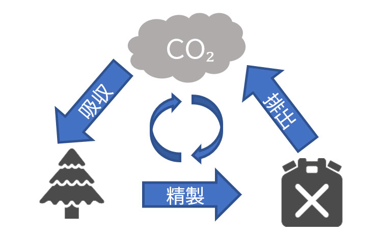 本製品は、原料から製造・使用・廃棄に至るまでのライフサイクルにおいて、CO2排出量の相殺・削減が公的な基準に基づき評価され、カーボンニュートラルとして認められた植物油系作動油です。