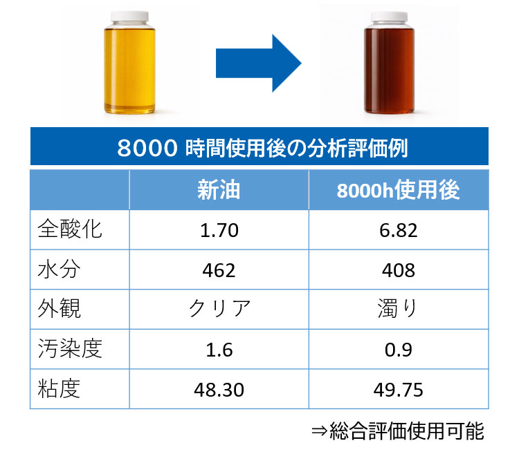 本製品は、一般的な作動油と比較して寿命が長いことが確認されています。