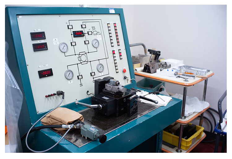 油圧ポンプから供給される油の圧力や流量、流れの方向をコントロールするもので、油圧試験機のような大出力かつ、高精度な制御が求められる装置においては、この部品の選定が非常に重要となります。