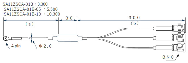 圧電式加速度変換器(アンプ内蔵型)用ケーブル SA11ZSCA-01B、SA11ZSCA-01B-5、SA11ZSCA-01B-10