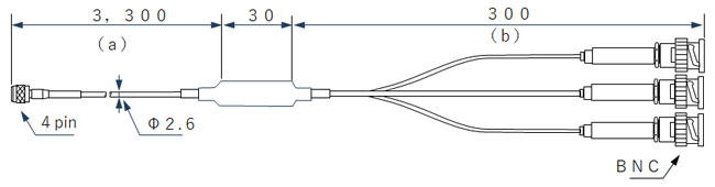 耐熱温度 (a)部180℃ (b)部105℃、但し センサ側コネクタ部125℃、BNCコネクタ部は60℃