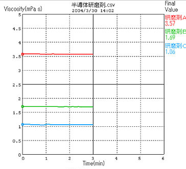 粘度計SV-10は半導体研磨剤のような低粘性の分散溶液の粘度を安定して測定することができ、研磨剤の本来の粘度、劣化状態の判断が可能となります。