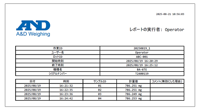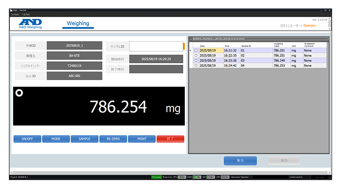 計量結果をユーザー名やロットID、日時等とともに記録・保存
