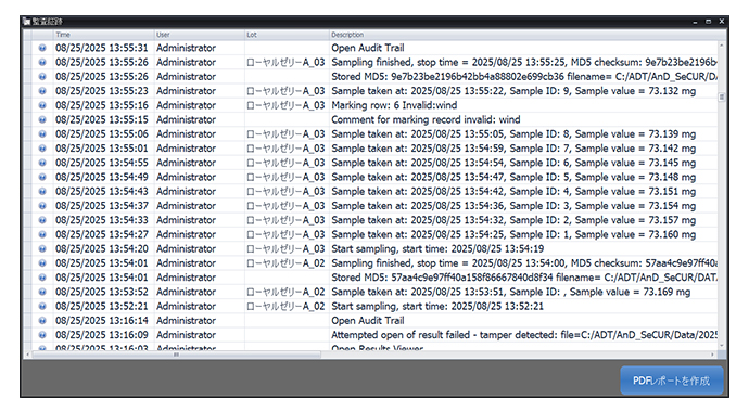 21 CFR Part 11/データインテグリティ対応ソフト A&D SeCUR