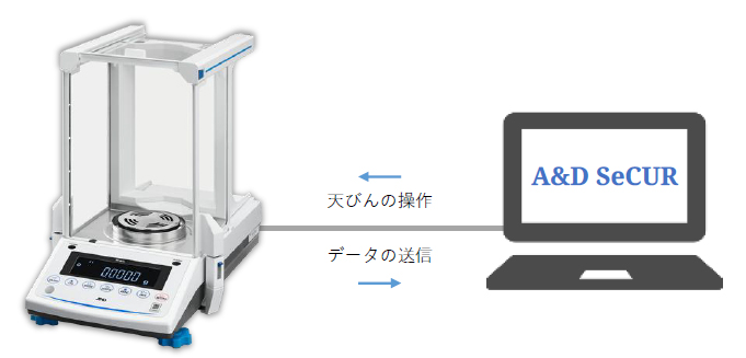 A&D SeCURがインストールされたPC1台につき、エー・アンド・デイ製電子天びん1台のみ対応します