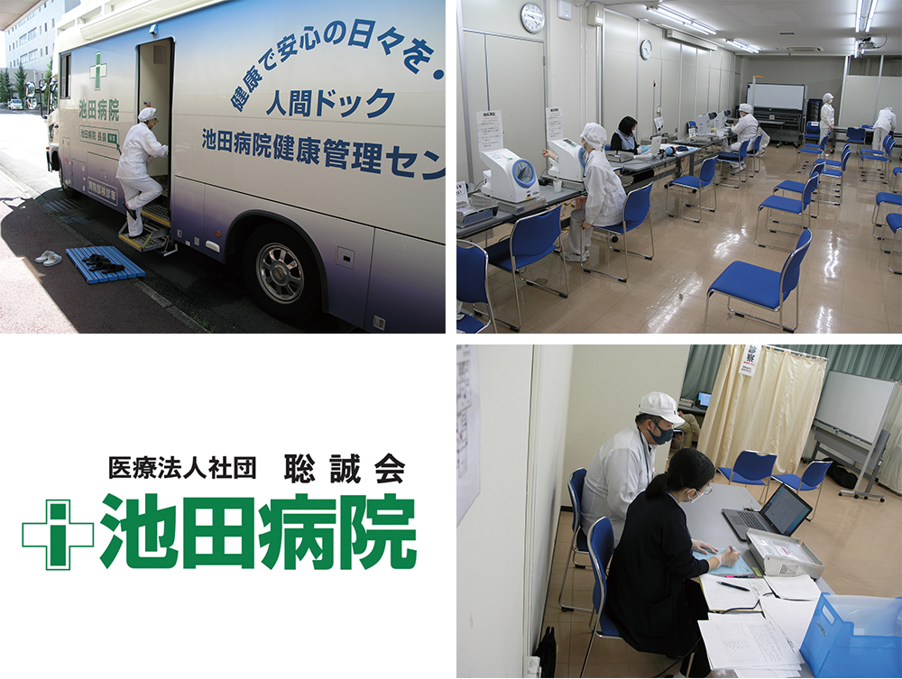 レントゲン車3台と出張内視鏡検診車1台で巡回健診を実施されている池田病院様。